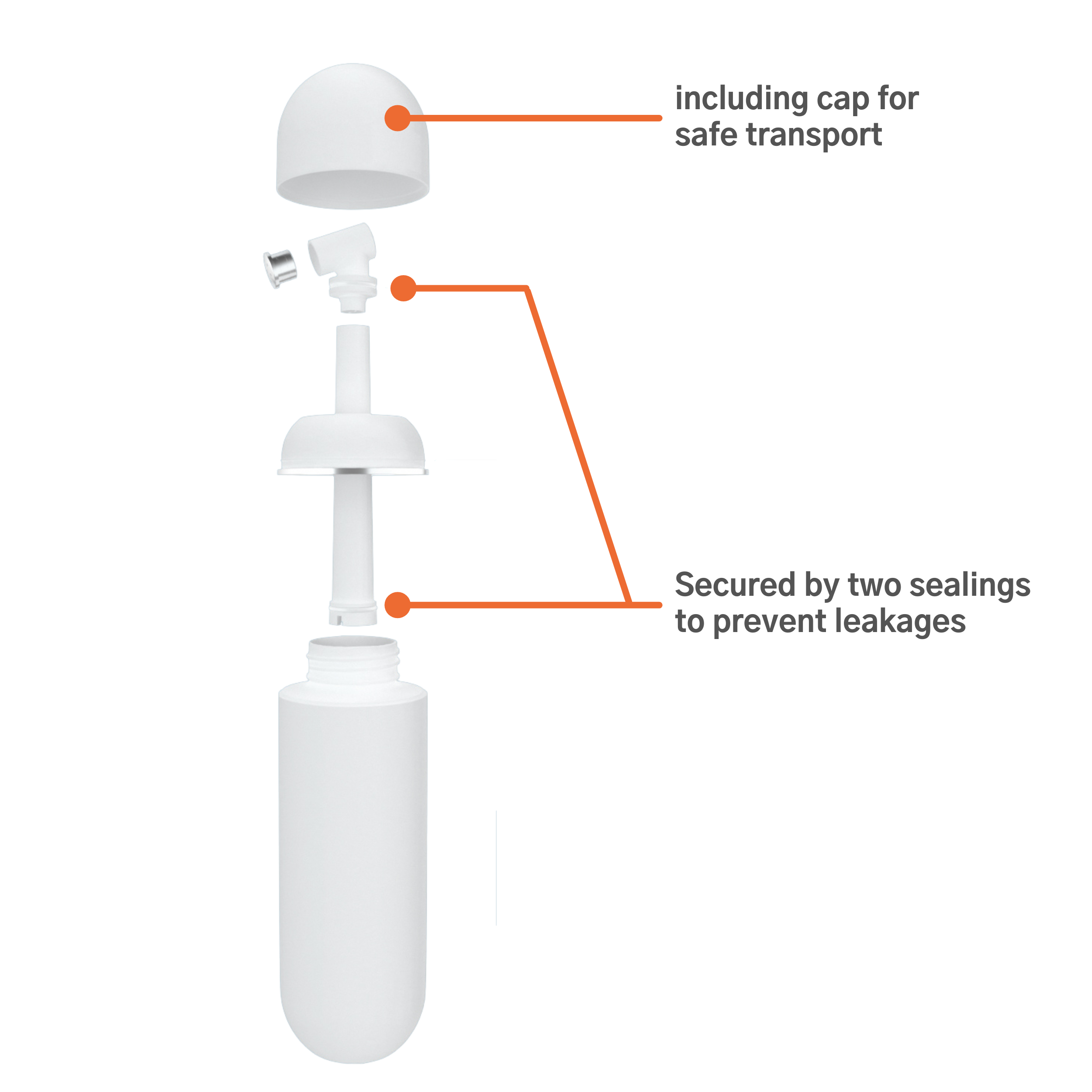 - Folded and unfolded the travel shattaf is protected against leaking by multiple sealings